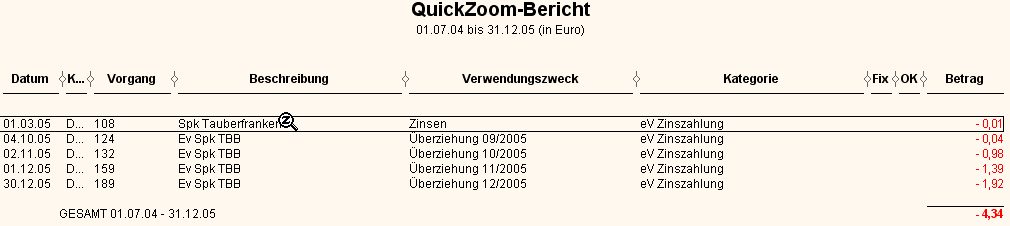 little expenses for bank interest